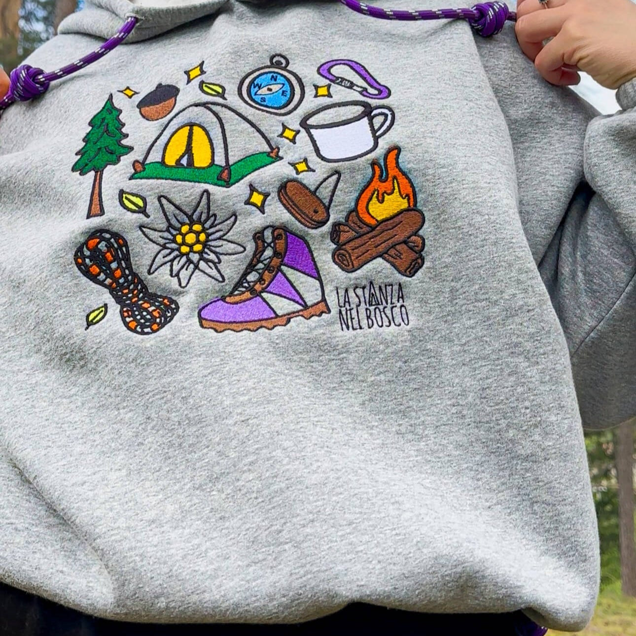 • FELPA RIFUGIO Ricamata con i simboli della montagna