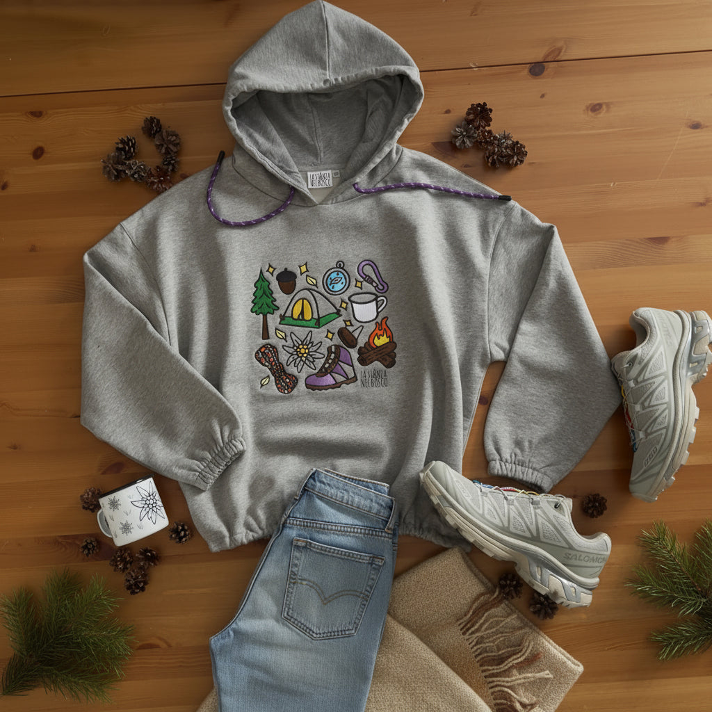 La felpa è disponibile in pre-ordine. Il tempo di produzione è variabile, scrivere a info@lastanzanelbosco.com per più info