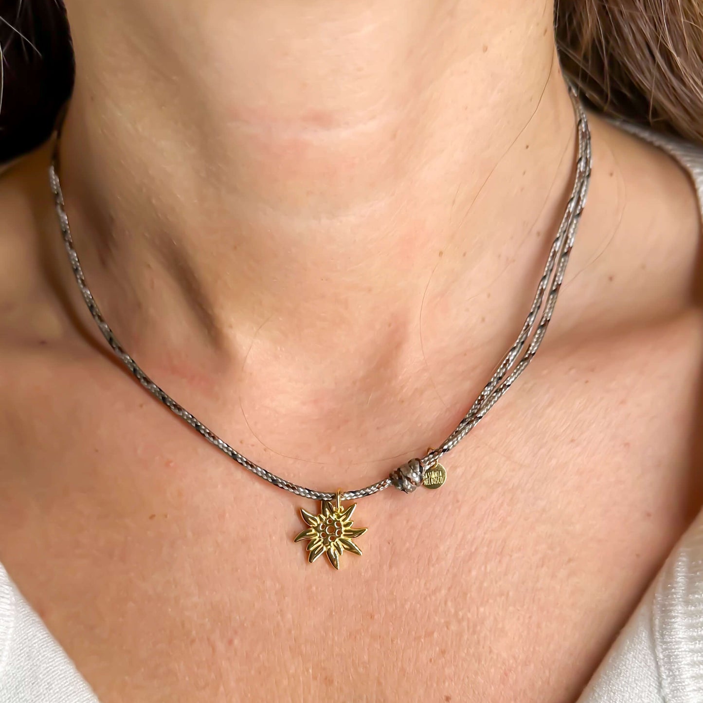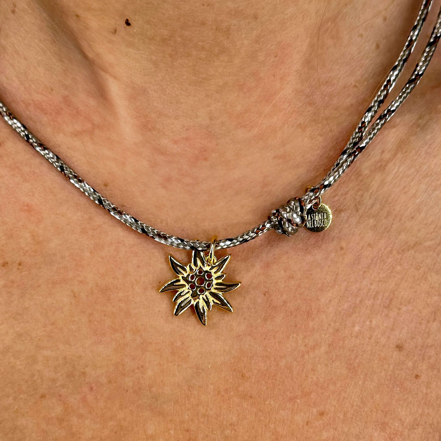 La Collana Stella Alpina di Luce è nata per chi vuole portare con sé il calore dell’alba in alta quota. Mentre la nostra versione d’Inverno in argento richiama la purezza dei ghiacciai, questa versione in argento dorato 18k è un tributo alla luce che illumina i sentieri e scalda l’anima.